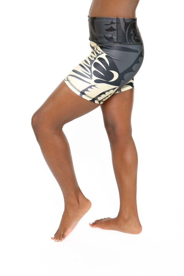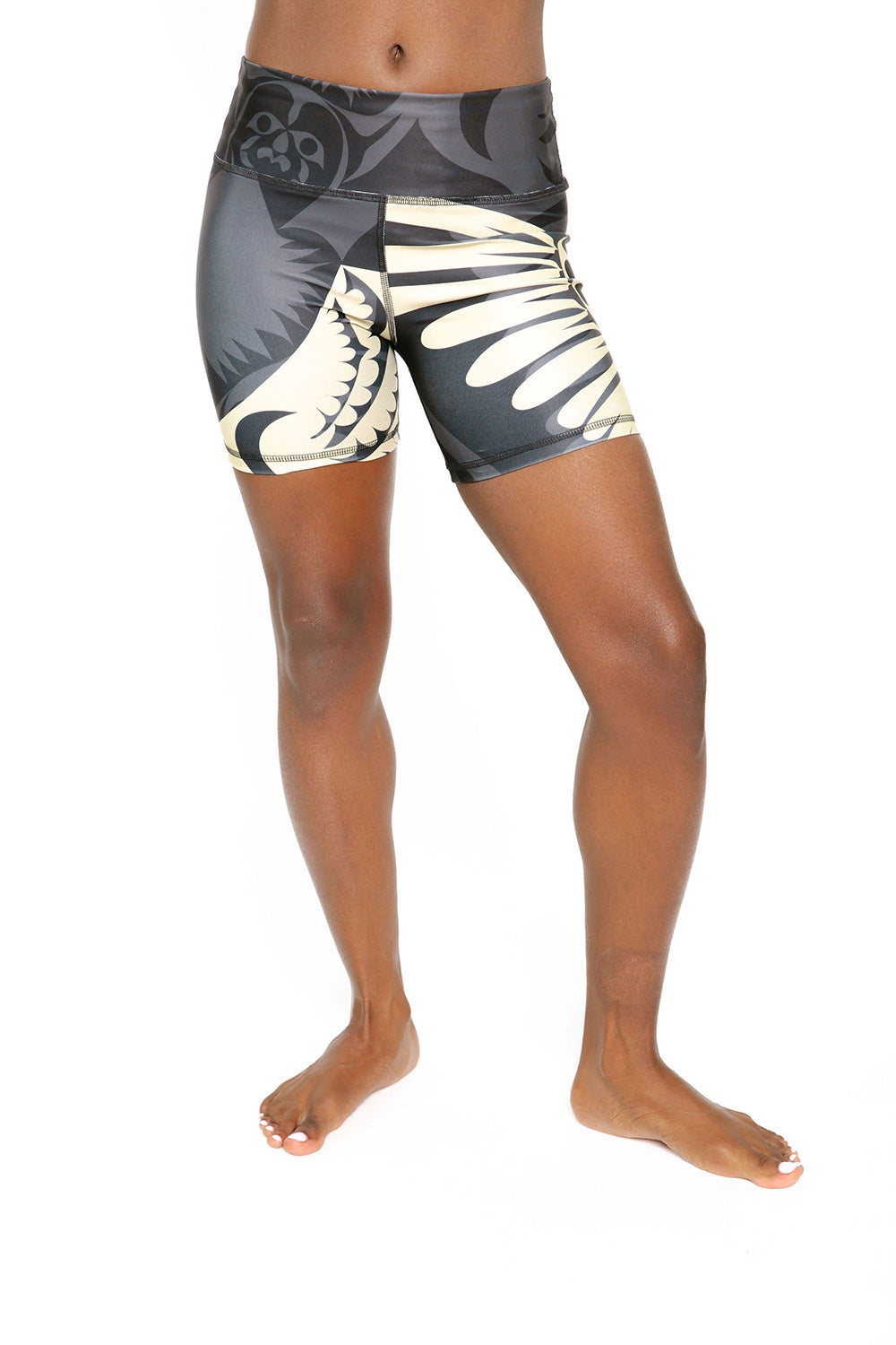 These mid-length shorts are designed with an inside pocket at waist-band perfect for stashing keys, credit cards, or lip balm. A ChitoSanté finish is applied for a natural wicking and anti-bacterial element and also to add a soft hand to the fabric. ChitoSanté is a new environmentally friendly treatment made from post consumption shrimp and crab shells (EPA Certified). The Eagle feather is considered a sacred part of many ceremonies and rituals. It’s known to mate with one partner for a lifetime. In Haida legend, the Eagle and Raven are close companions and serve as alter egos. Print designed by NoMiNoU featuring art by Mark Gauti. Prints will vary from style to style.